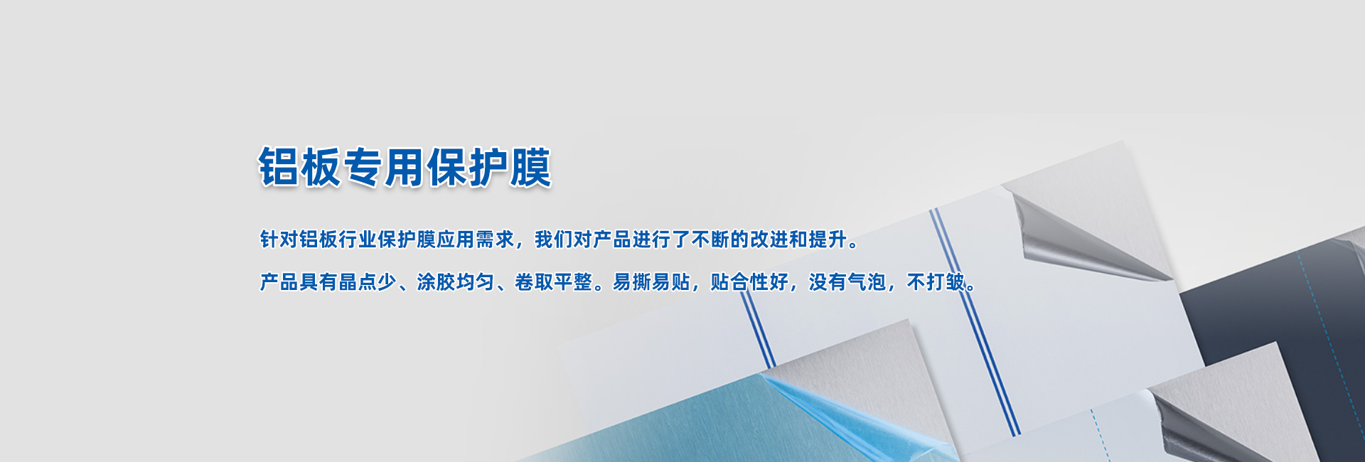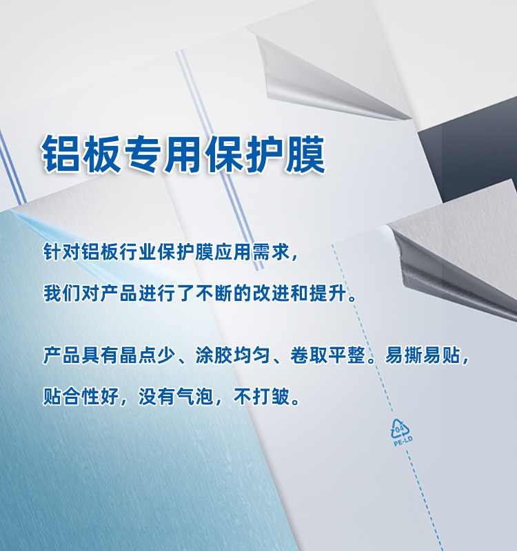 配合行業內先進的生產技術力量,為設施完備的保護膜生產基地,可巧妙地為您解決各種復雜的難題,為您的產品提供符合高水準的保護。公司推行科學的管理模式,建立起有效的運營系統,以研發制造為核心,打造表面保護的整體解決方案,產品應用于彩鋼板、鋁材、不銹鋼、塑料、電子產品、家電用品、陶瓷、馬賽克、家具、玻璃、地毯以及各類建筑、裝飾材料等行業,具有易撕易貼、膠面不轉移、剝離無殘膠等特點,得到廣大客戶的一致好評。特別是在不銹鋼保護膜、鋁板保護膜領域不斷開拓追尋,逐步成就核心技術優勢,市場占有率節節攀升。